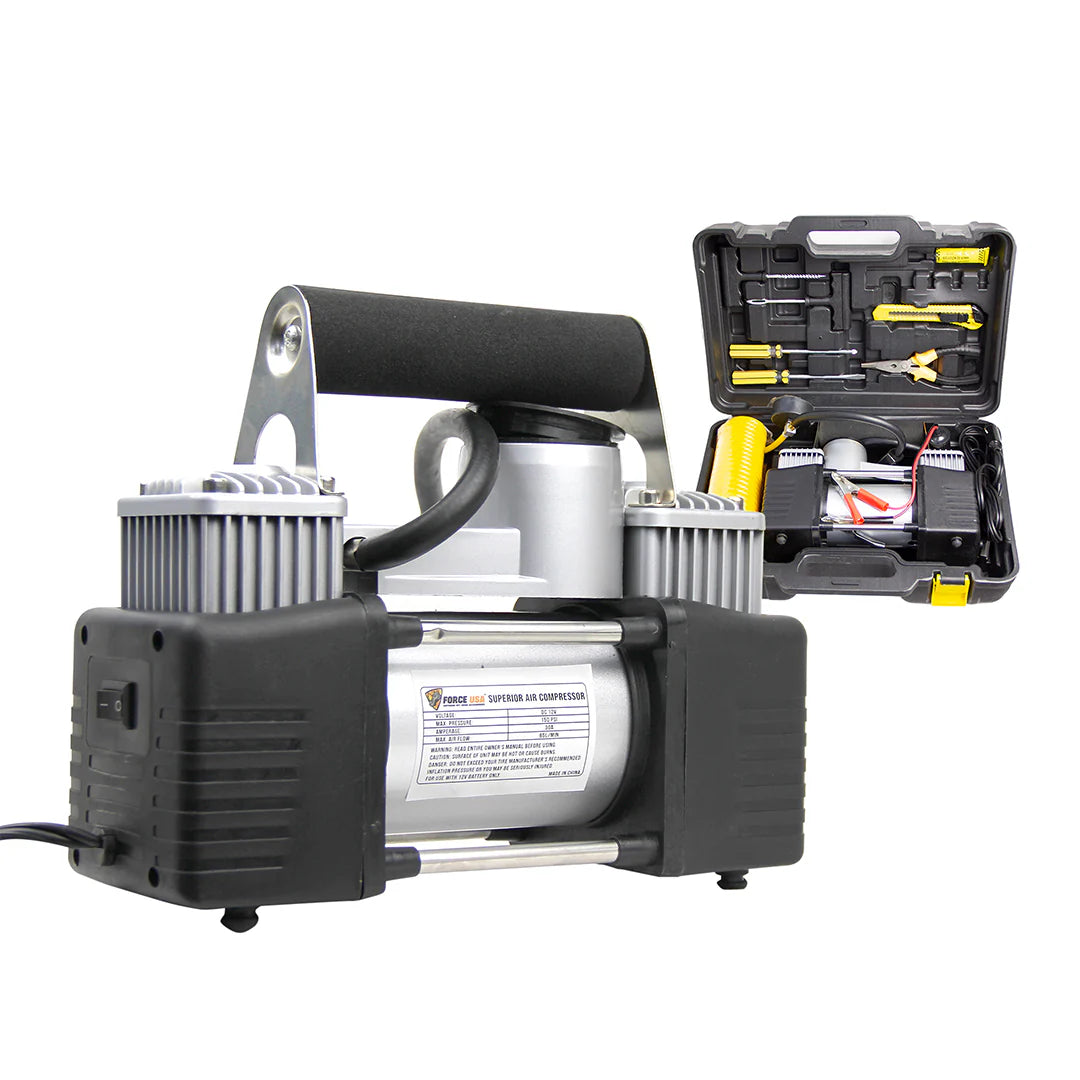 The Force USA Heavy Duty Air Compressor with Tool Thick Handle is built to perform under pressure. Whether you are inflating truck tires, operating air tools, or handling industrial tasks, this compressor combines powerful 12V performance with a tough and portable design. Its reinforced thick handle offers superior grip and transportability, making it a must-have for serious professionals and off-road enthusiasts alike.