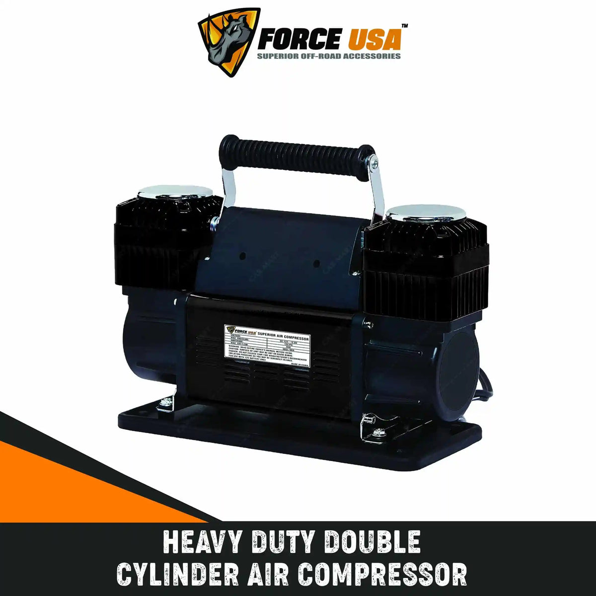 1. Dual Cylinder Design: Equipped with dual cylinders, the Force USA Air Compressor delivers double the power and efficiency compared to single cylinder models. This allows for faster inflation times, making it ideal for larger tires found on 4×4 vehicles, trucks, and RVs.